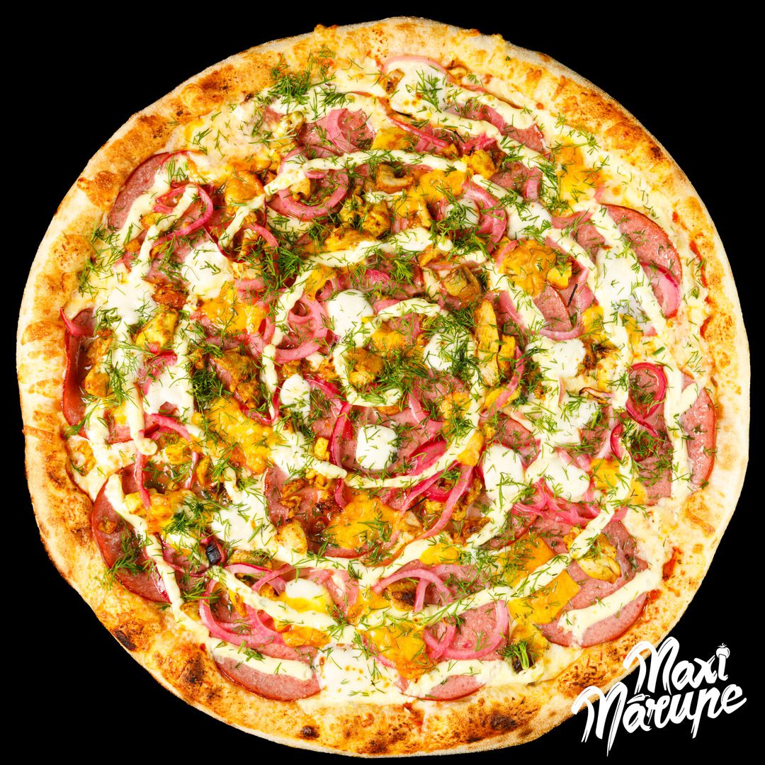 Dilles, Mocarella siers, Picas mērce, Salami, Siers, Chedara siers, Gurķu mērce, Marinēti sarkanie sīpoli, Vista